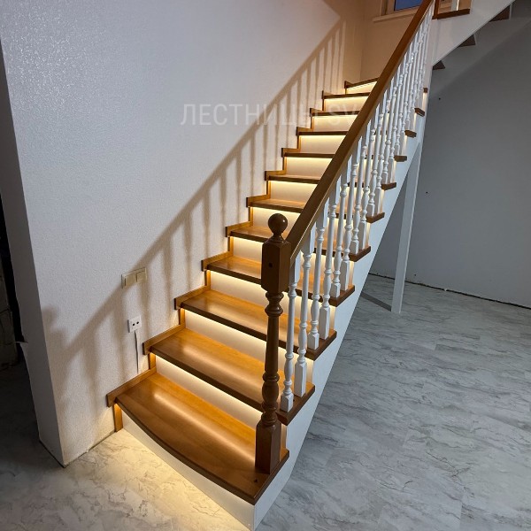 Лестница с подсветкой из бука