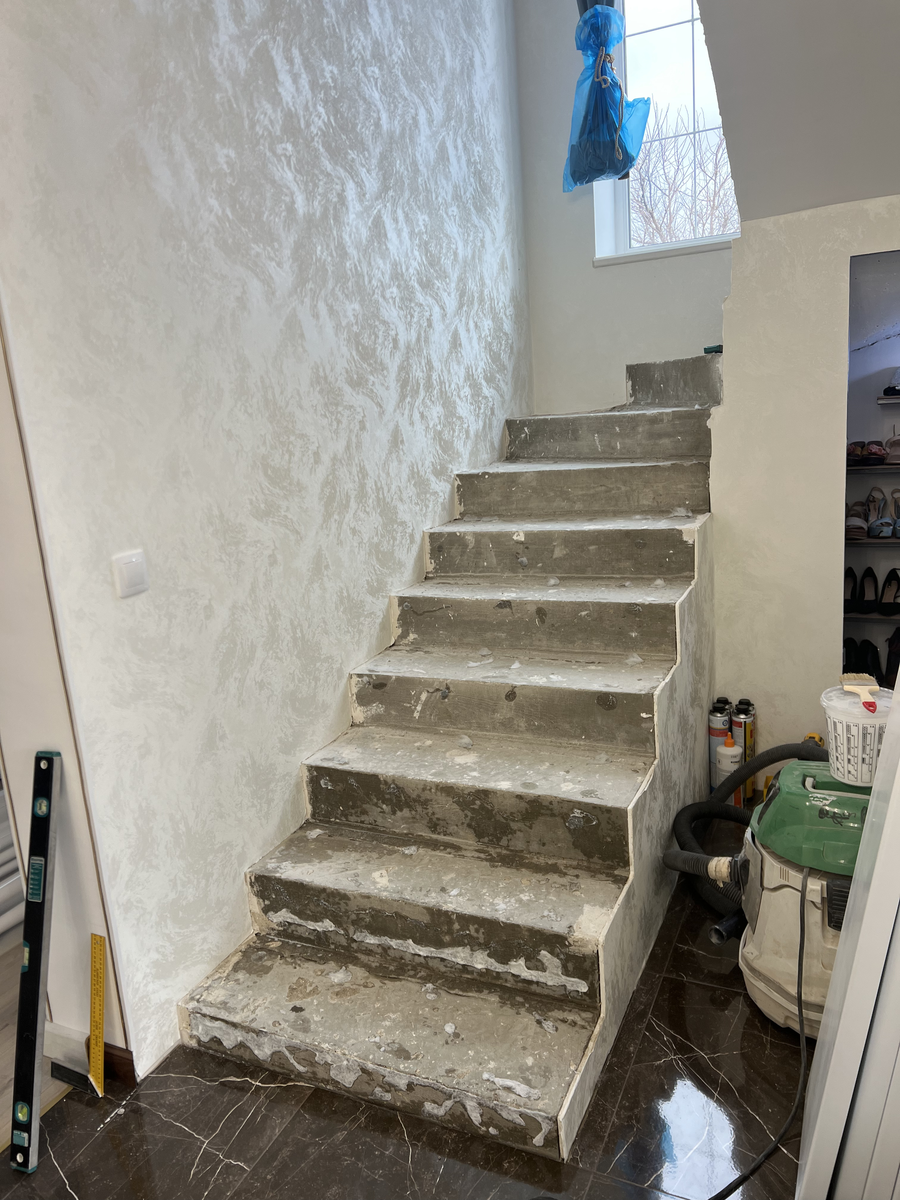 Покрыли маслом. Подступенки из керамогранита.