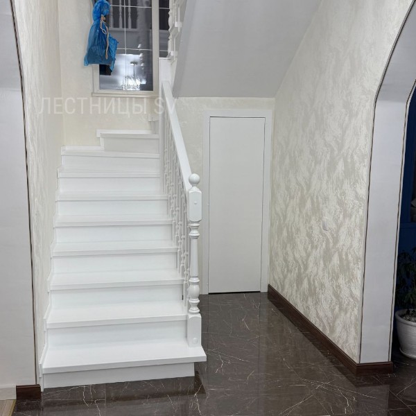 Цвет белая эмаль, под акриловым лаком. Балясины прямые с фрезеровкой.